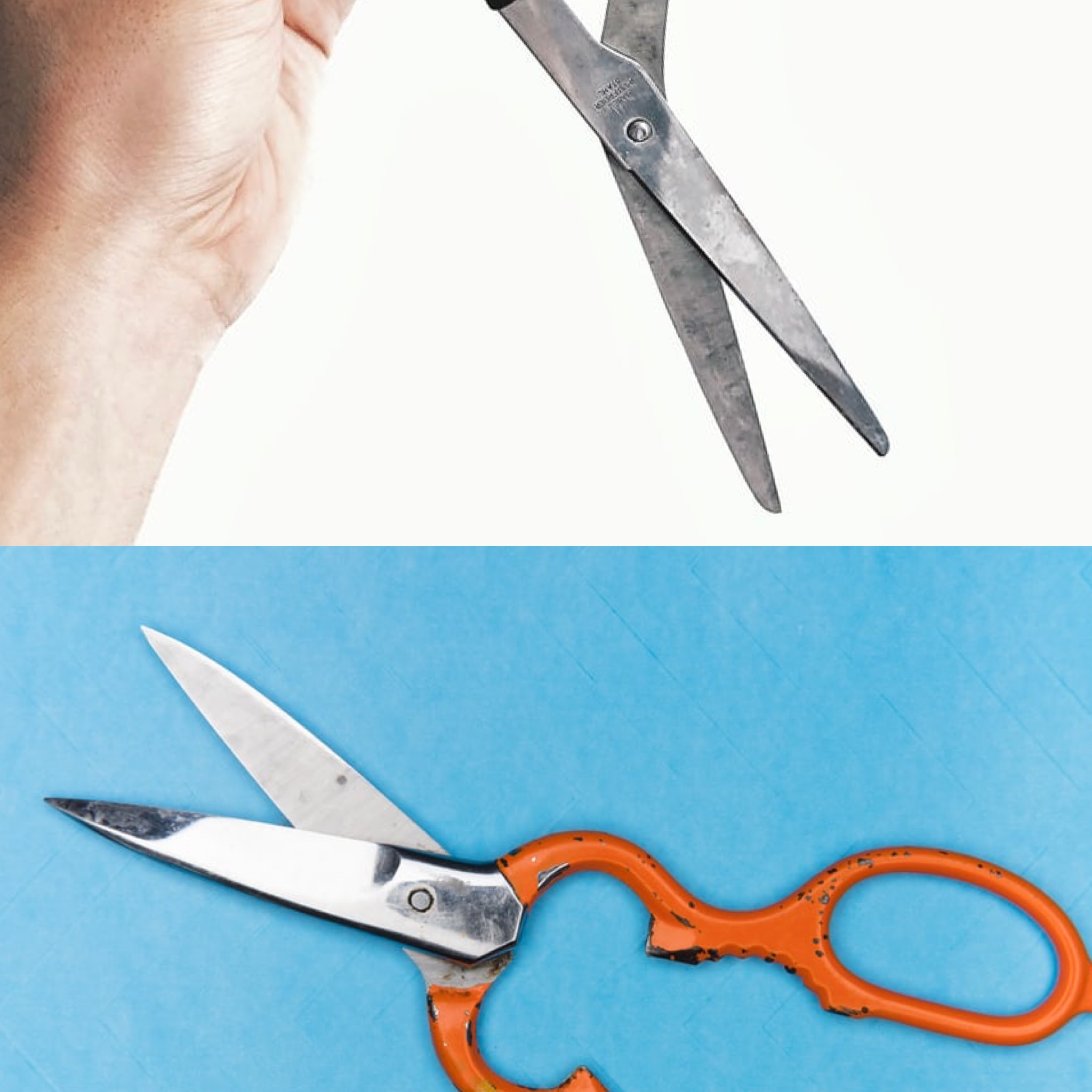 첫 번째는 가위입니다. 하나보단 두개가 있는 것이 훨씬 바람직한데 두개의 가위를 동시에 잡고 벌린 뒤 2중 칼날을 코르크 한 가운데에 끼웁니다. 너무 세지 않지만 튼튼할정도로 밀어넣어 고정을 한 뒤 어느 정도 가위 날이 코르크 마개 안에 안정적으로 안착하면 다른 한 손으로 병을 잡아 지지한 뒤 가위를 잡은 손으로 손잡이를 비틀면서 빼냅니다. 혹은 살살 돌리면서 빼도 되고요. 이 때 주의할 점은 가위 칼날을 정가운데에 찌를 때 너무 안으로 밀려들어가지 않도록 해야합니다. 또한 날카로운 물체이다보니 손이 다치지 않게, 마지막 코르크를 빼내는 순간까지 주의해야합니다. 집에서 흔히 구할 수 있는 오프너 대용재료지만 위험하기 때문에 다른 방법을 먼저 시도해보는 것을 추천합니다.