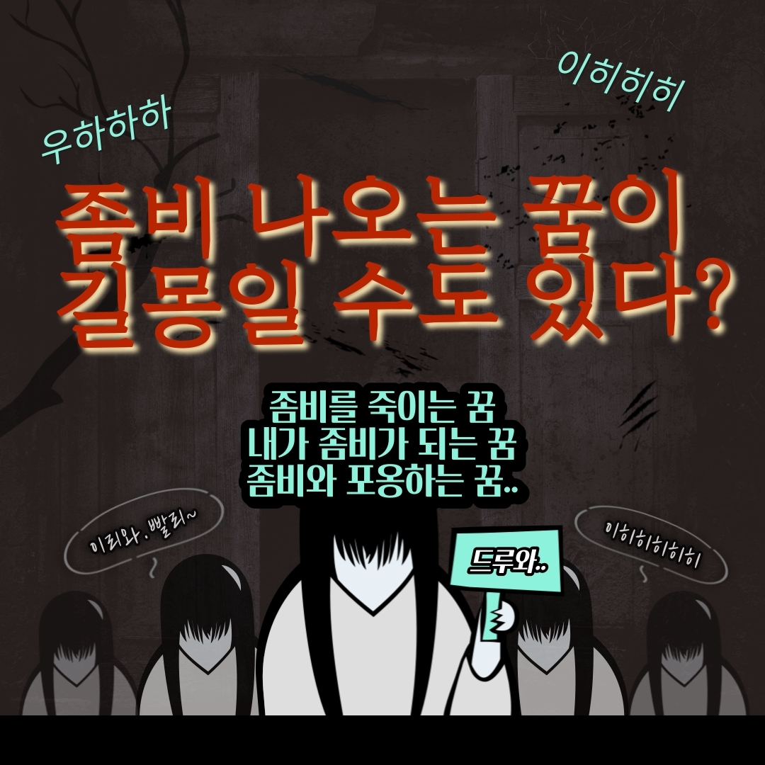 좀비 나오는 꿈은 현재 본인의 '심리상태'를 의미합니다. 당연히 '좀비'라는 존재자체가 긍정적이고 밝은 것은 아니니 심리가 불안정하다고 볼 수 있는데요. 보통 심신이 미약하거나 기가 약해졌을 때, 몸이 아프거나 피곤할 때도 좀비 꿈을 꿀 수 있습니다. 가장 많이 꾸는 좀비에게 쫓기는 꿈, 쫓기고 있는 꿈은 현재의 건강상태가 좋지 않은 것을 의미합니다. 따라서 실제 건강에 유의하고 사고나지 않도록 주의하는 것이 좋습니다. 좀비에게 쫓기는 것에 이어 공격을 당한 꿈, 좀비에게 물리는 꿈을 꿨다면 현실에서도 문제가 생길 가능성을 암시하는데요. 본인의 일이나 사업에서 어려움을 겪을 위험이 있으며 사고가 나지 않도록 부정적인 사람/물건을 조심해야합니다.