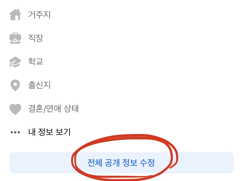 이후 스크롤을 내리면 '전체 공개 정보 수정'이 있는데 이를 클릭하시고요. 다음은