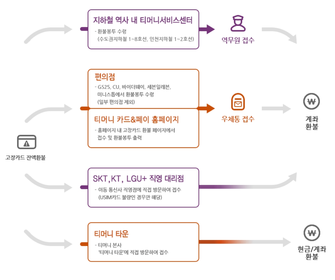 <고장카드(고장 티머니,고장 교통카드) 환불 접수 방법>